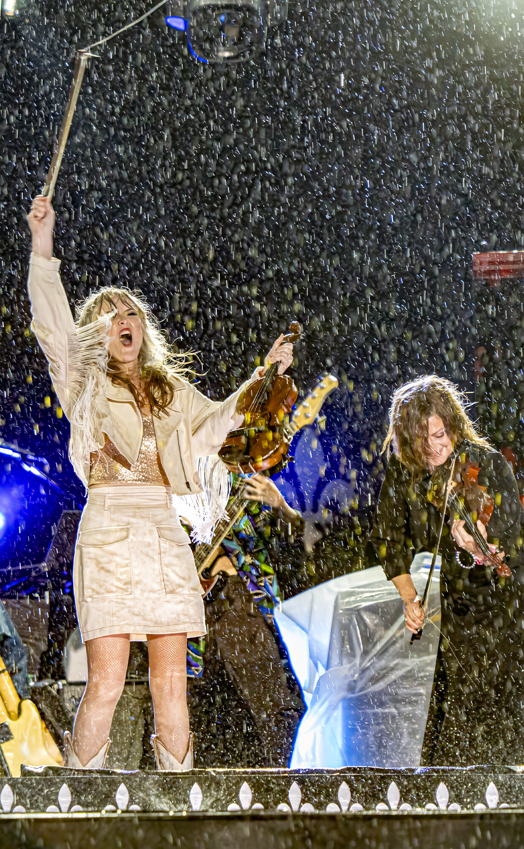 Sur les plaines d’Abraham le 23 juin, le Grand spectacle de la Fête nationale dans la capitale nous a fait vivre une grande gamme d’émotions, à l’image de notre beau Québec. C’est toutefois sous une forte pluie que se sont rassemblés les Québécois.es sur les plaines d’Abraham. Étant donné le mauvais temps, la première partie prévue à 19h, avec le groupe Zébulon, a dû être annulée. Les membres du groupe on quand même fait une courte apparition lors du Grand spectacle qui a quant à lui eu lieu dès 21h, mais dans une formule écourtée et une scénographie revisitée pour s’assurer de livrer des numéros dignes de la Fête nationale malgré les intempéries.